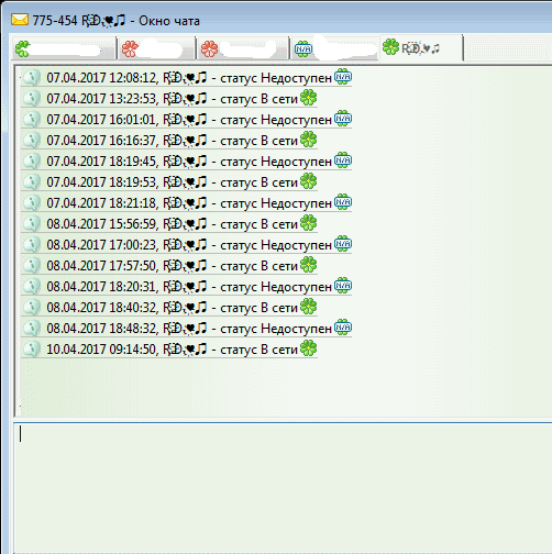 Ещё хорошо бы снимок экрана, с окна чата того контакта, по которому перестаёт статус появляться. Чтобы понять, когда перестал определяться статус. типа такого
