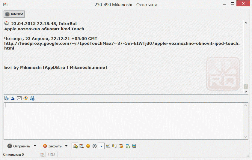Да, писал подобный плагин. Только заголовок и закладки останутся прежними, убираются лишь все панели и поле ввода становится в одну строку. Как-то так:хочу окно чата с минимальным интерфейсом - просто рамка, разделенная на две части, без всяких кнопочек, строк состояния и т.п.